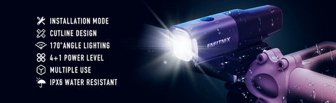 The body of this cycling light is built in outstanding CNC aluminium alloy material, perfectly makes the bike light super durable, Highest water resistant level of IPX-6 prevent from rainning no matter in heavy rain or thick fog.