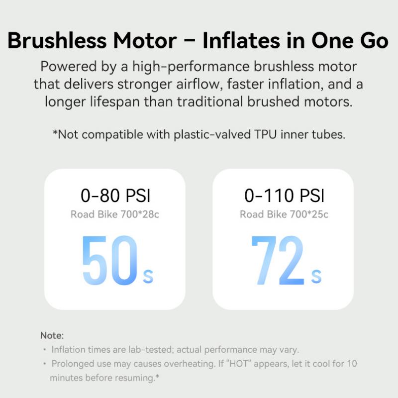 Powered by a high-performance brushless motor that delivers stronger airflow, faster inflation, and a longer lifespan than traditional brushed motors.